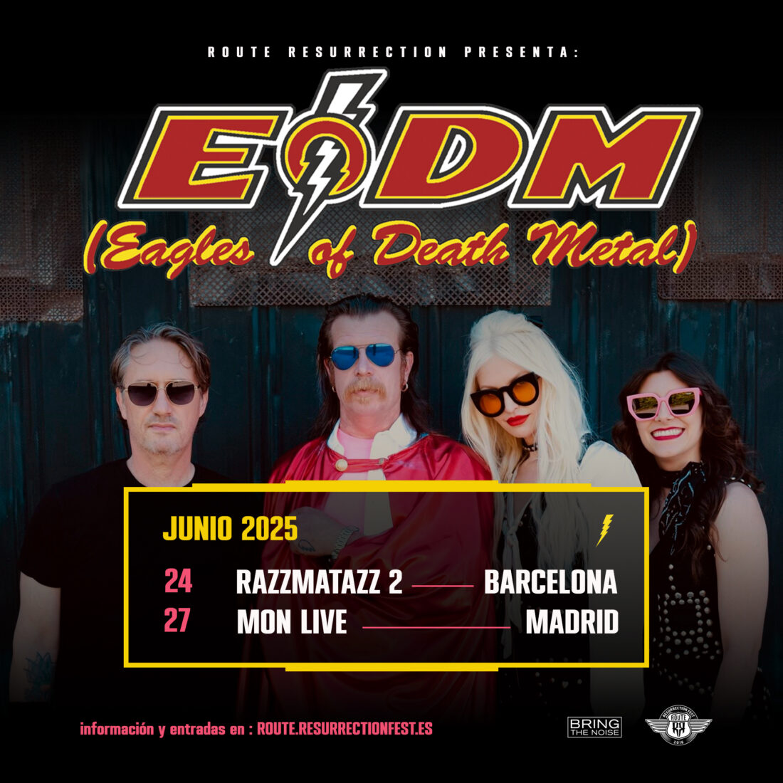 Con su inigualable energía, sus riffs pegadizos y ese toque tan característico de irreverencia, EODM dejará su huella en nuestros escenarios con dos conciertos únicos en los que convertirán Razzmatazz 2 y Mon Live en el epicentro de la fiesta.