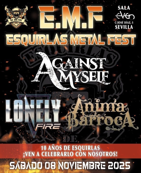 Nuestros compañeros de Esquirlas de Metal celebrarán este noviembre el décimo aniversario de la fundación de la web con un festival potente y variado que tendrá lugar en la sala Even de Sevilla, donde podremos disfrutar de las siguientes bandas nacionales: