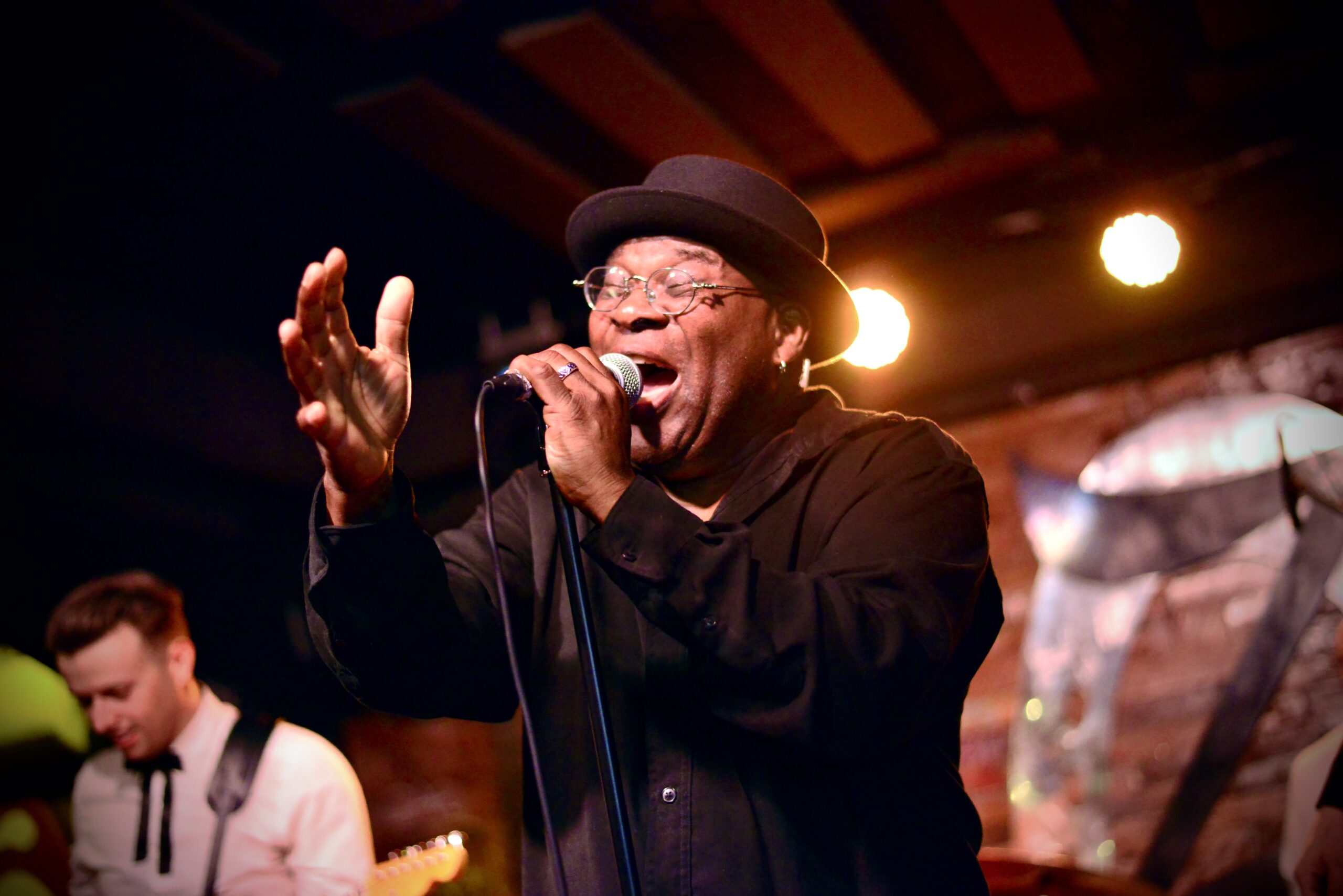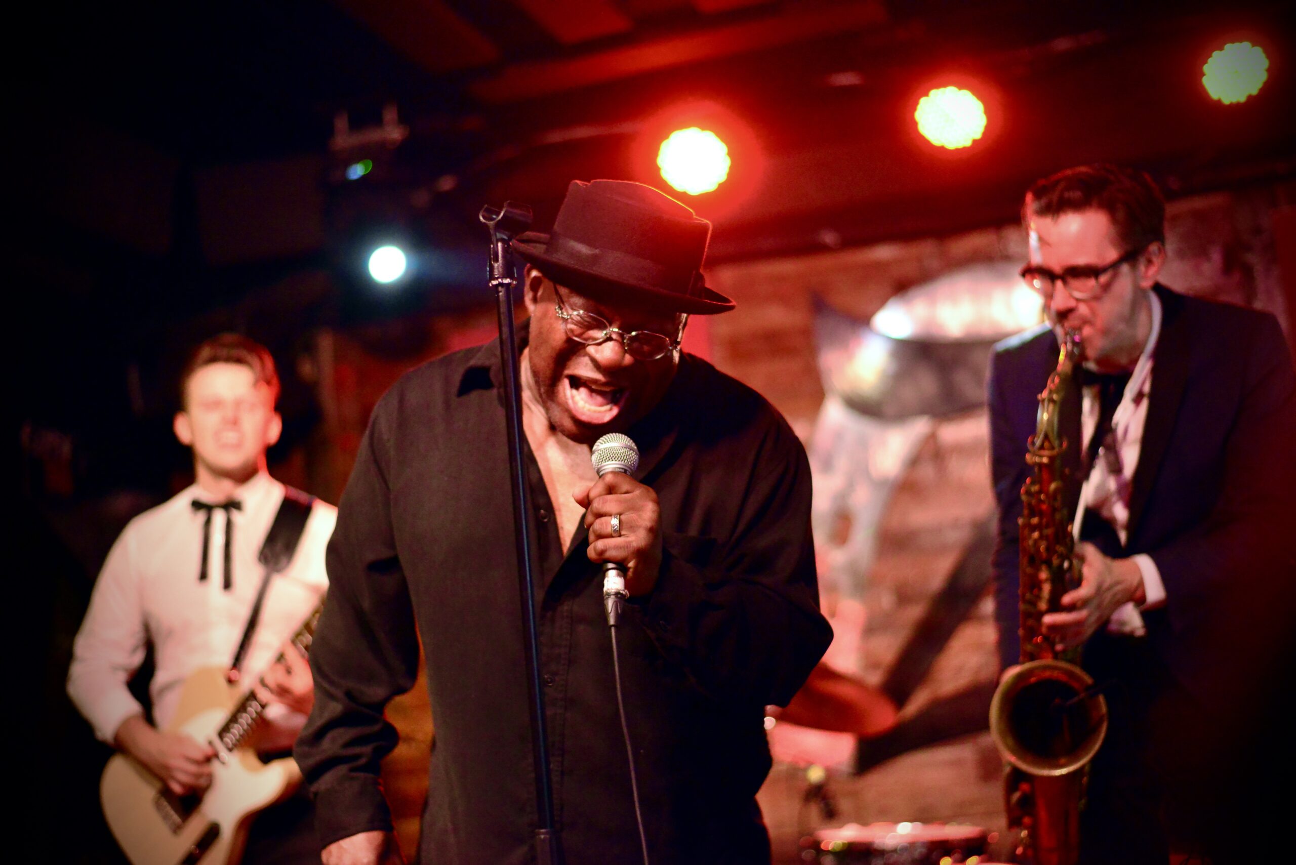 El gran Barrence Whitfield y la superbanda MFC Chicken combinan como la leche y el café dando como resultado un delicioso brebaje de intenso pero agradable sabor. Nadie diría que el veterano Barrence Whitfield tiene ya cumplidas las 70 primaveras, es tal su entrega sobre el escenario y la energía que desprende su garganta que yo le echaba bastantes menos. El tipo pisa el escenario con el desparpajo de quien se sabe capaz de hipnotizar a un bar entero a base de su voz y sudor. Es como para quedarse pasmado con la técnica vocal de Barrence, alucinante.