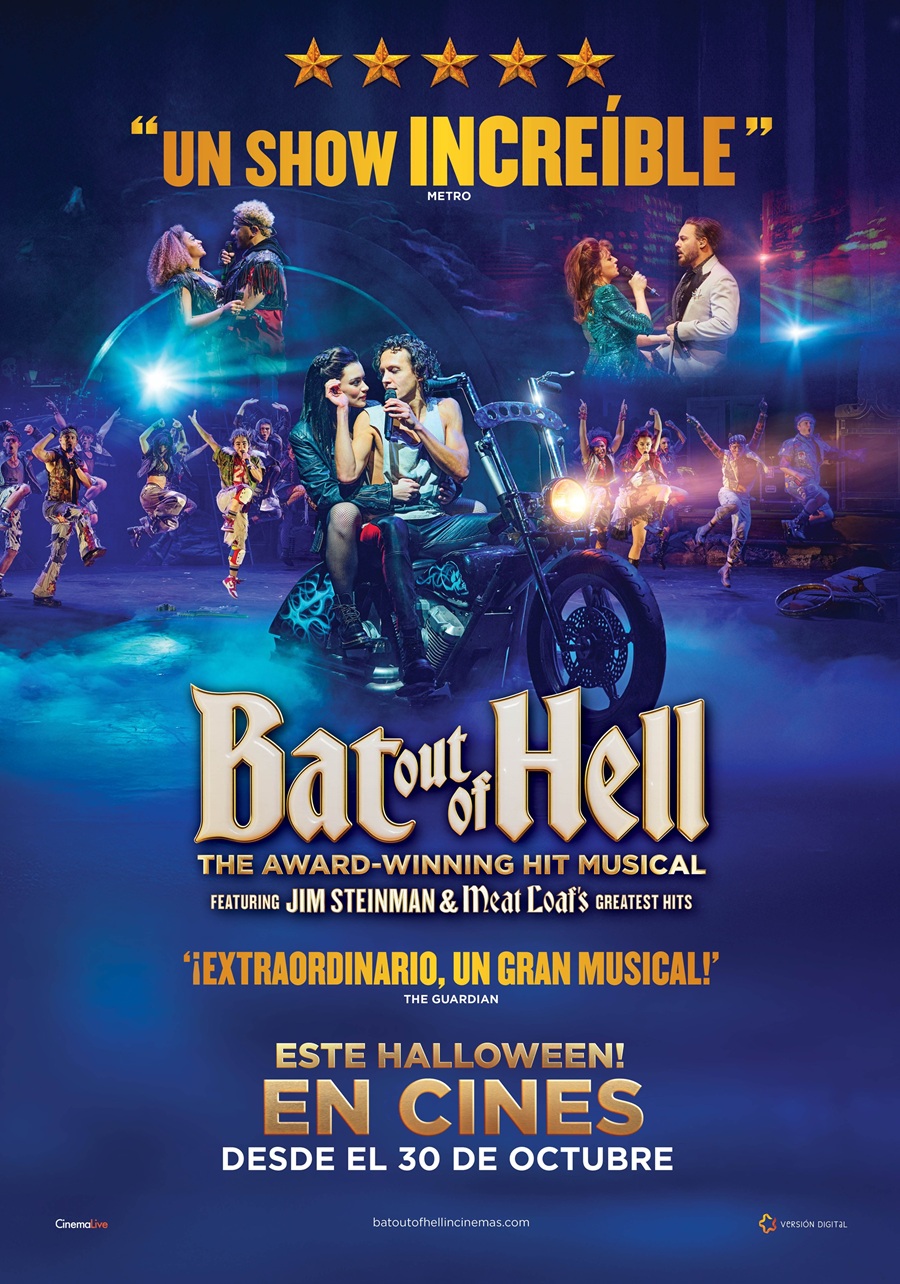 Este Halloween, el rugido del rock resonará en las salas de cine con el estreno de Bat Out of Hell – El musical (2025), la versión cinematográfica del aclamado musical inspirado en el álbum debut de Meat Loaf y las composiciones de Jim Steinman. El evento, distribuido en España por Versión Digital, podrá verse en 30 cines de todo el país a partir de este jueves 30 de octubre.