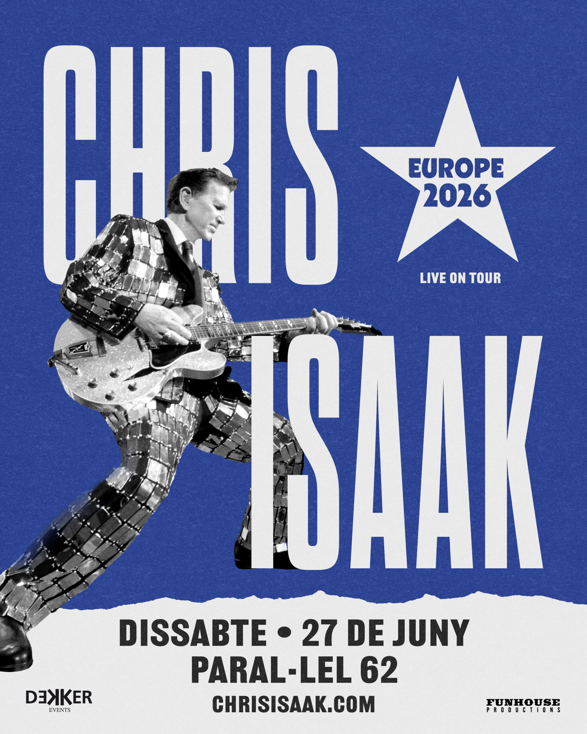 El concierto supondrá el reencuentro de Isaak con uno de los escenarios más significativos de su trayectoria en la ciudad. Paral·lel 62, antiguo Studio 54, fue el espacio que acogió por primera vez al artista californiano en Barcelona hace más de tres décadas, dando inicio a una relación especialmente estrecha con el público barcelonés.