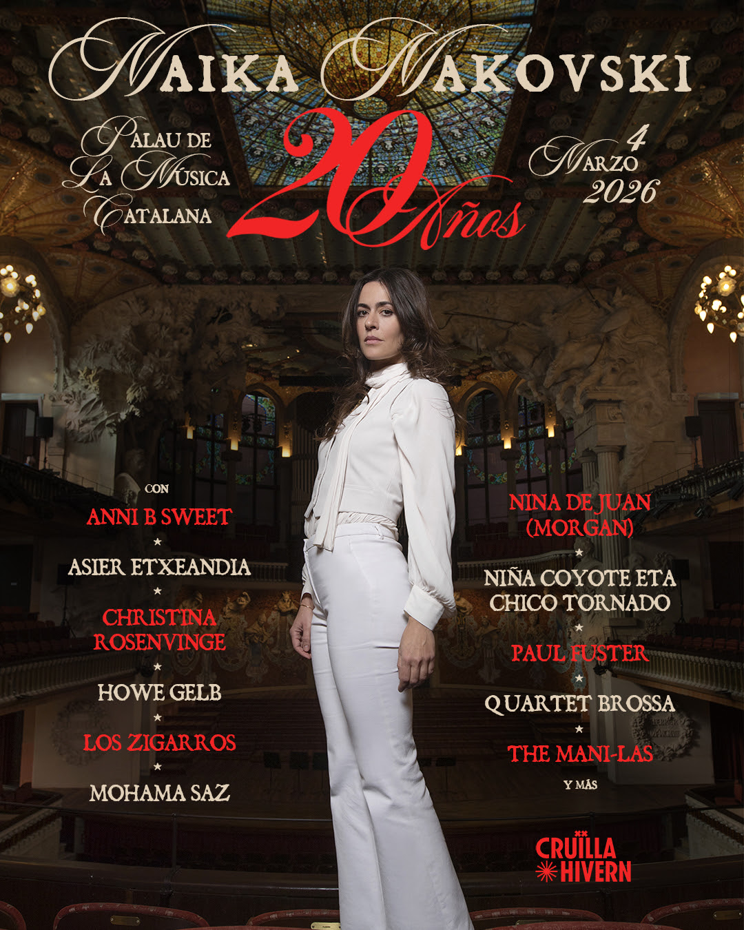 Maika Makovski celebra dos décadas de trayectoria artística con un concierto muy especial el próximo miércoles 4 de marzo en el Palau de la Música Catalana, dentro del ciclo Cruïlla Hivern. Un espectáculo irrepetible que conmemora el 20º aniversario de la publicación de su primer álbum, Kradiaw (2005), y que además será grabado en directo.