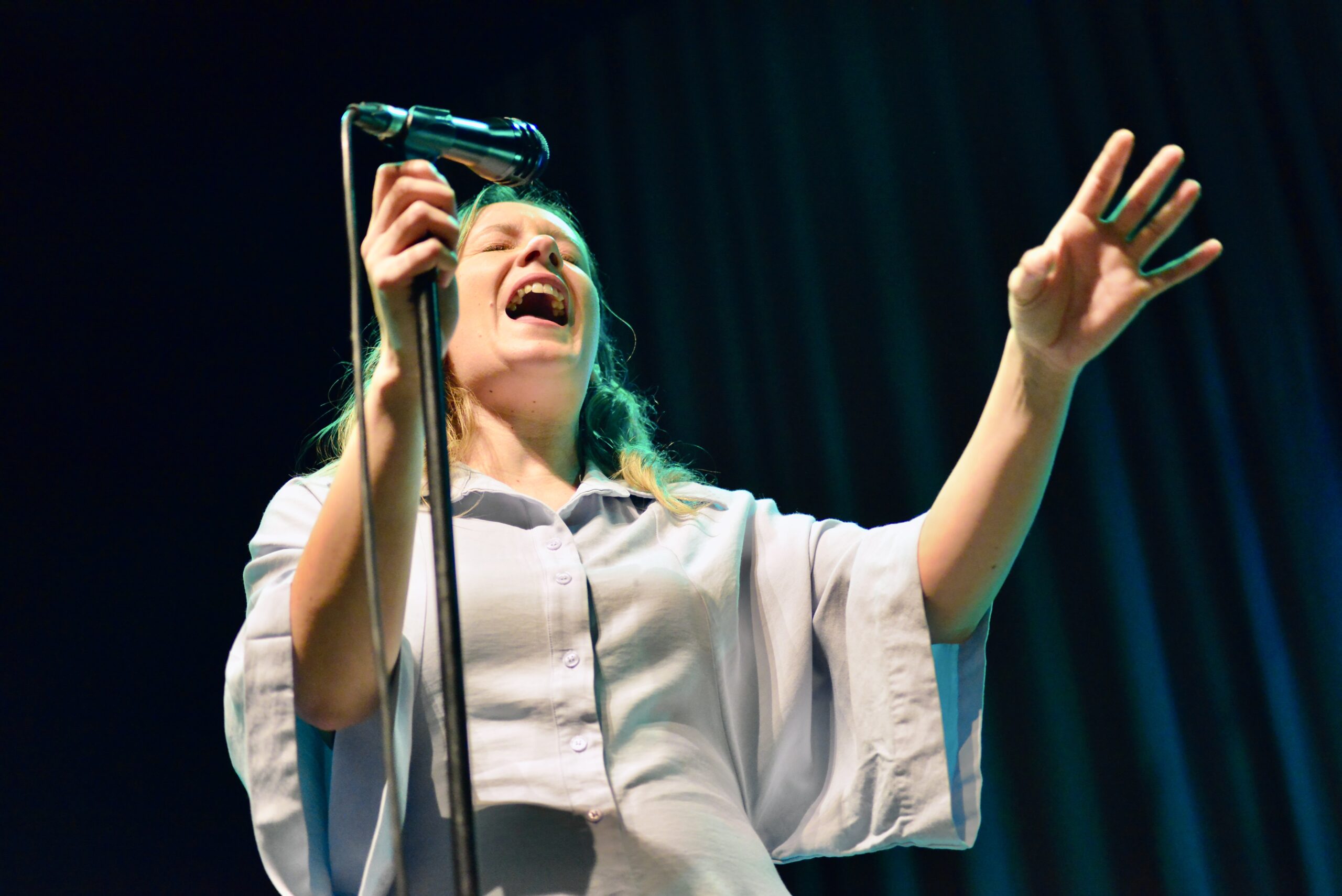 La clave volvió a ser Nina de Juan. No solo por la voz —que sigue siendo uno de los instrumentos más expresivos del panorama nacional— sino por su manera de estar. Entre tema y tema dejó ver sus pequeñas inseguridades con una naturalidad desarmante: continuos agradecimientos al público, sonrisas tímidas y miradas cómplices a la banda. Lejos de restar autoridad, su honestidad la engrandece. Su simpatía no es impostada; nace precisamente de mostrarse vulnerable. Pero cuando se siente segura, cuando decide apretar, el Teatro de las esquinas se derritió. No era para menos. Temazos como Blue eyes, Jimador, Cruel, Radio o River no está al alcance de cualquiera, el efecto que provocan en el respetable tampoco. El funk de Another road volvió a encender la noche para acabar el show por todo lo alto. Conexión plena con un público que aceptó la propuesta y se vino arriba en un concierto que acabó en fiesta.