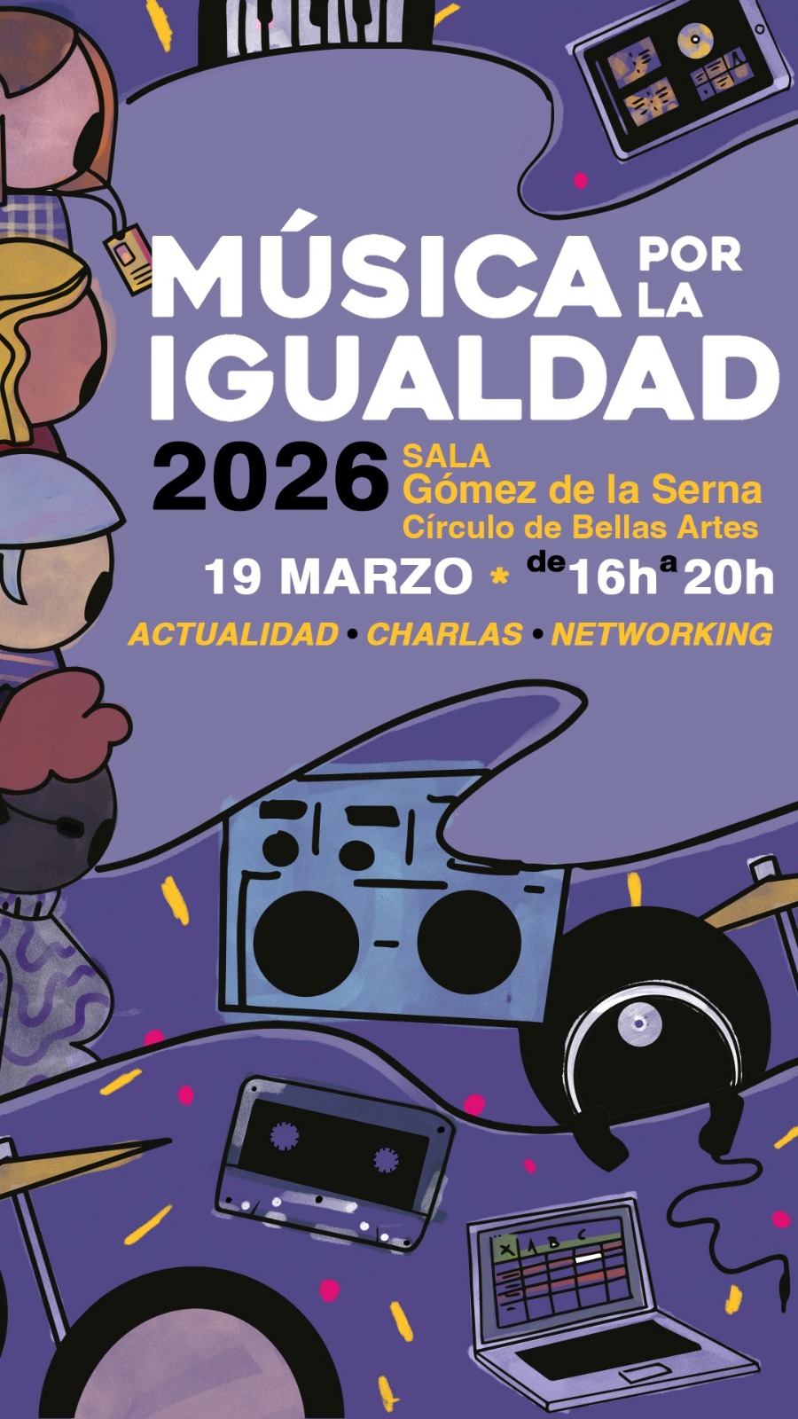 El próximo 19 de marzo, la sala Ramón Gómez de la Serna del Círculo de Bellas Artes acogerá la segunda edición de Música por la Igualdad, una jornada colaborativa que volverá a situar en el centro del debate la importancia de construir una industria musical más igualitaria, diversa y sostenible. Tras el éxito de su primera edición, celebrada en la sala de prensa del Movistar Arena y organizada por Live Nation España junto al Máster de Música en Directo de la Universidad Complutense de Madrid, esta nueva convocatoria amplía su dimensión y suma fuerzas con empresas, asociaciones y agentes clave del sector para consolidar un espacio de reflexión compartida.
