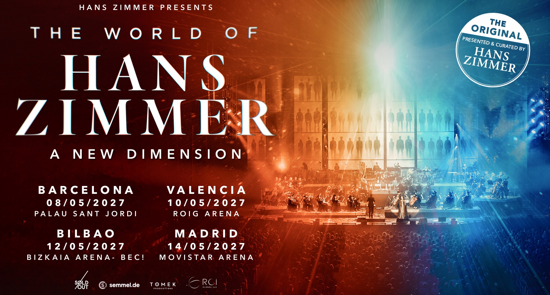 The World Of Hans Zimmer – A New Dimension regresa a Europa en 2027 y la promotora Sold Out anuncia las fechas en España: Barcelona (8 de mayo 2027), Valencia (10 de mayo 2027), Bilbao (12 de mayo 2027) y Madrid (14 de mayo 2027).