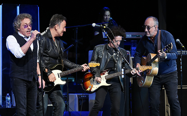 NEW YORK, NY – MAY 28: (L-R) Musicians Roger Daltrey, Bruce Springsteen, Willie Nile and Pete Townshend perform at the 11th Annual Musicares Map Fund Benefit concert at Best Buy Theater on May 28, 2015 in New York City. (Photo by Andrew H. Walker/Getty Images)